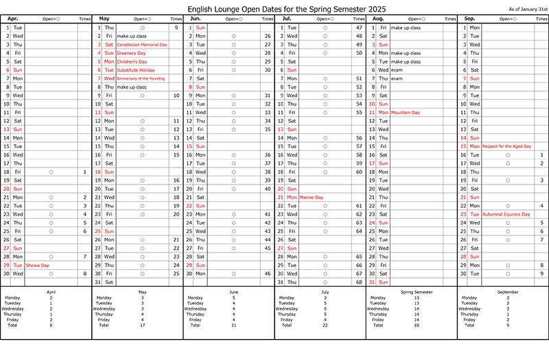 【2025年04月16日】 English Lounge 2025年度 開室日